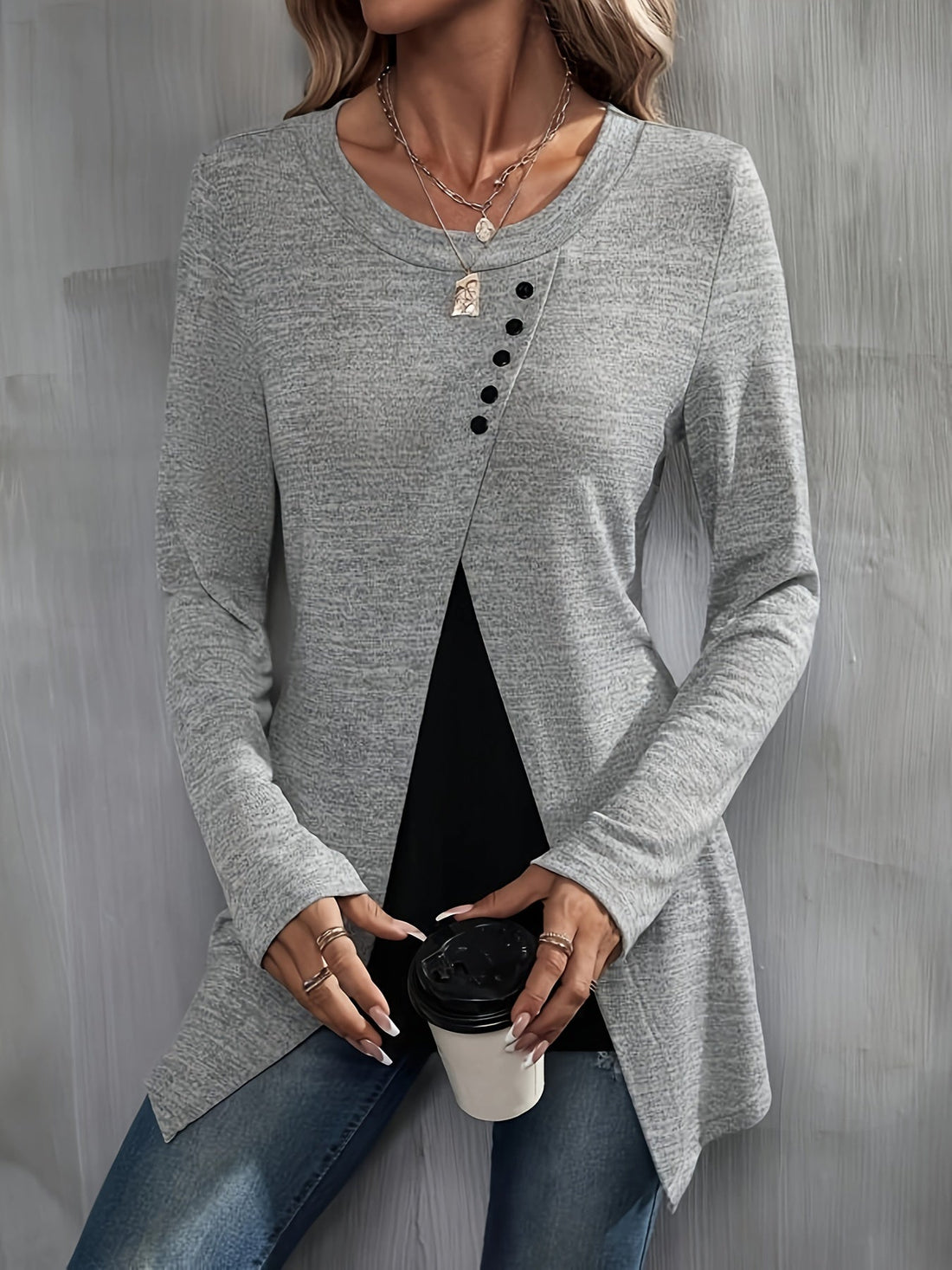 Sale Faux Twinset Crew Neck T-Shirt, Casual Long Sleeve T-Shirt
