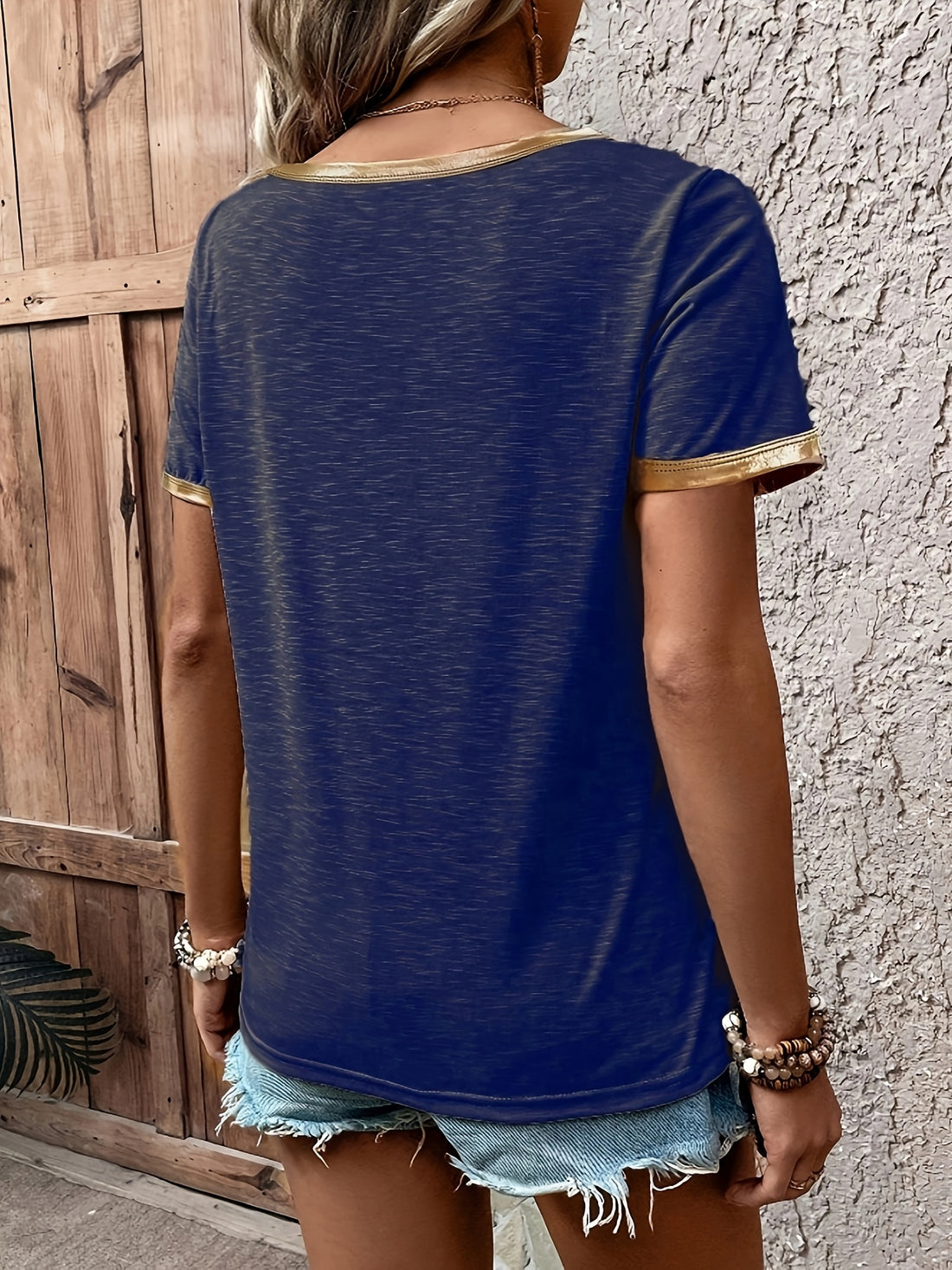 Sale Color Block Crew Neck T-shirt, Casual Long Sleeve Top