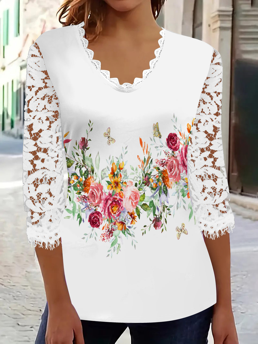 Crew Neck Floral Long Sleeve Comfy Casual Sweater Tee