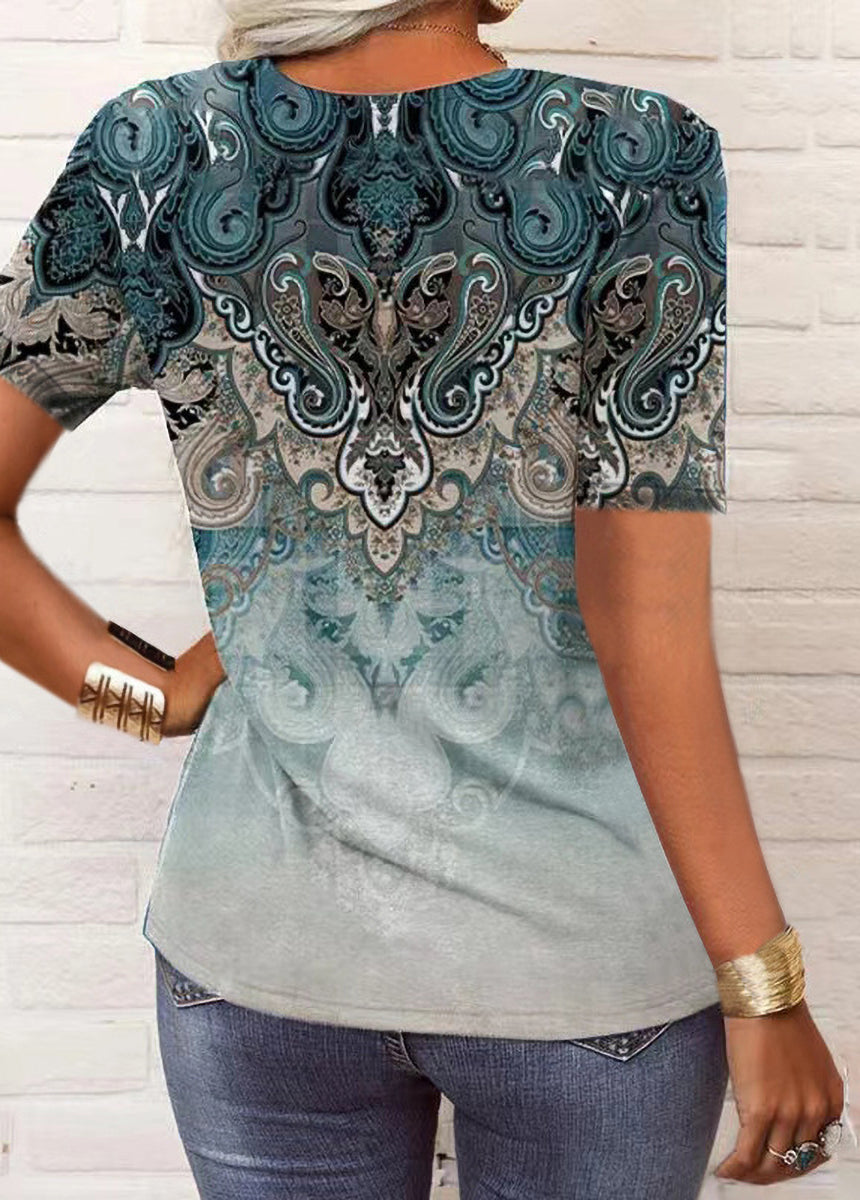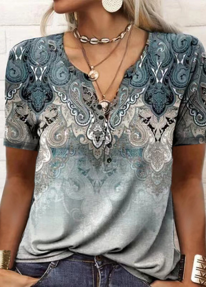 Sale Printed Ethnic Style V-neck Short Sleeve T-shirt