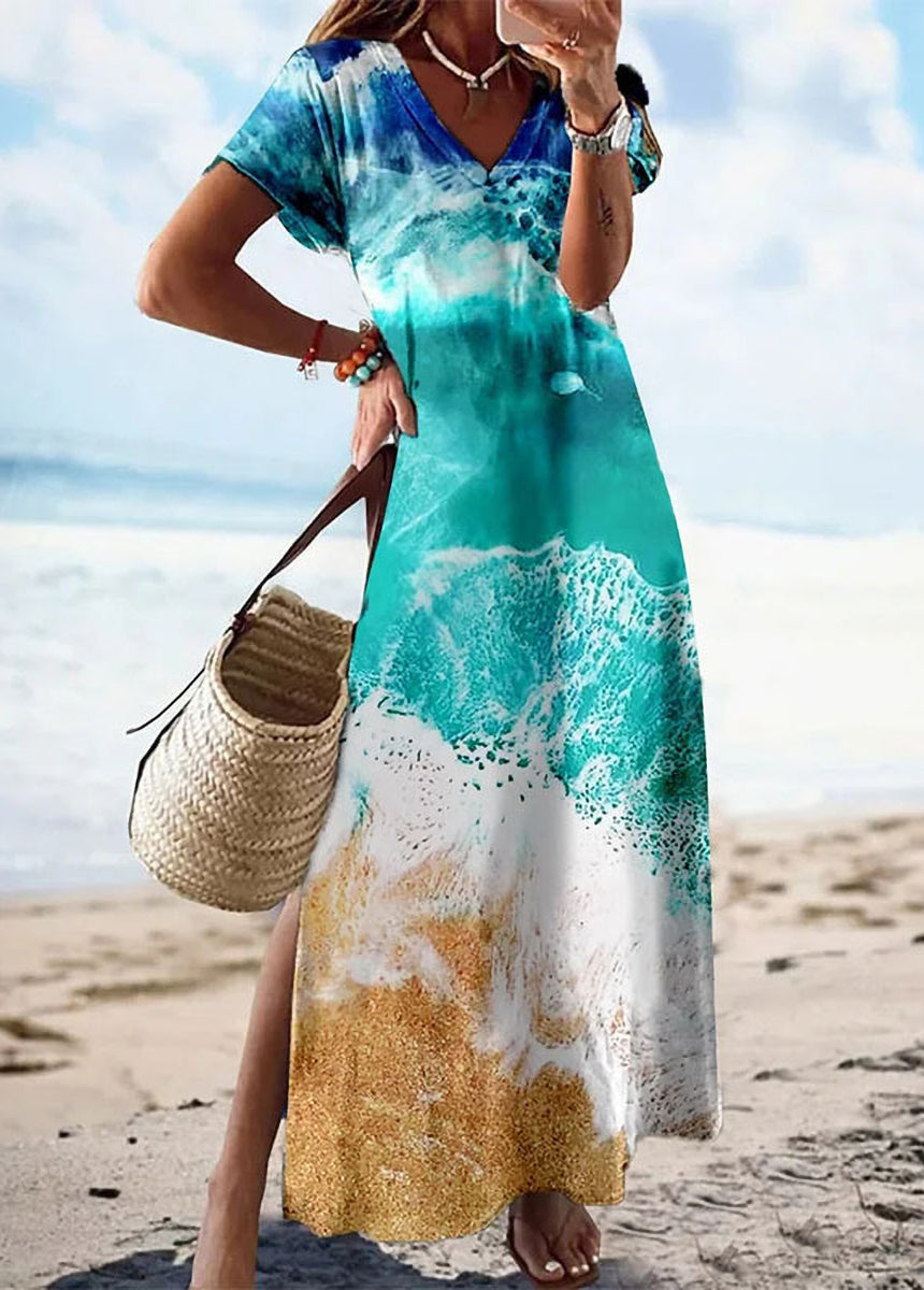 Sale Ethnic Print Casual V-neck Short Sleeve Dress