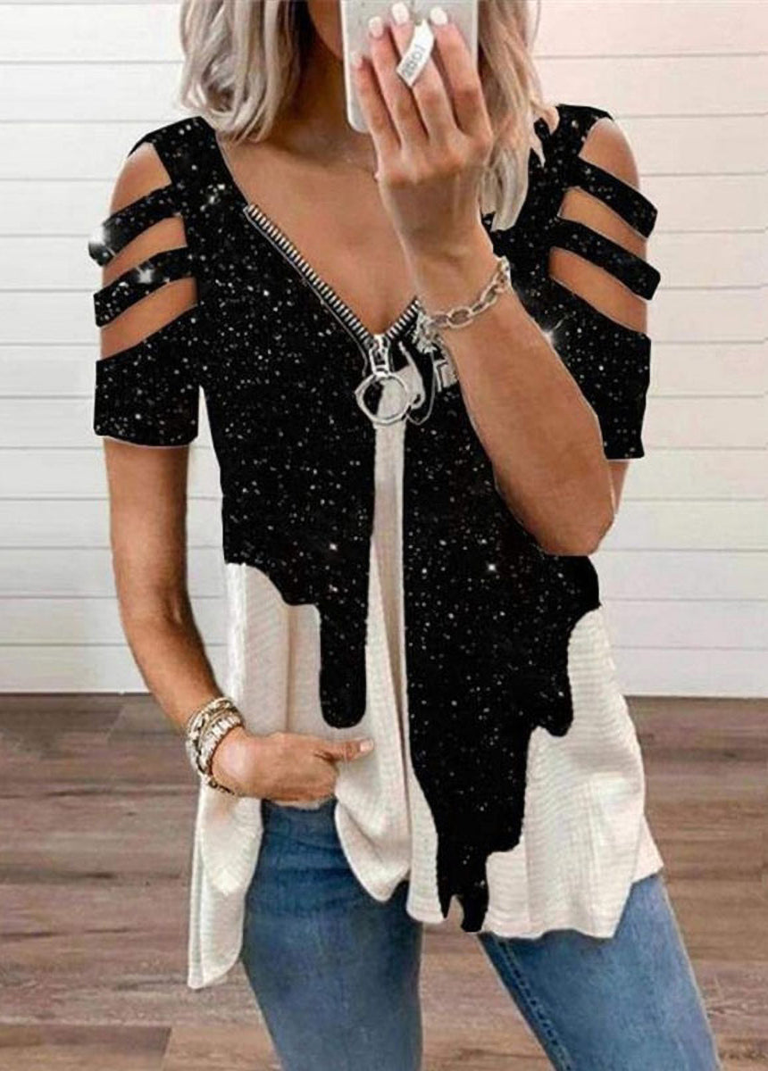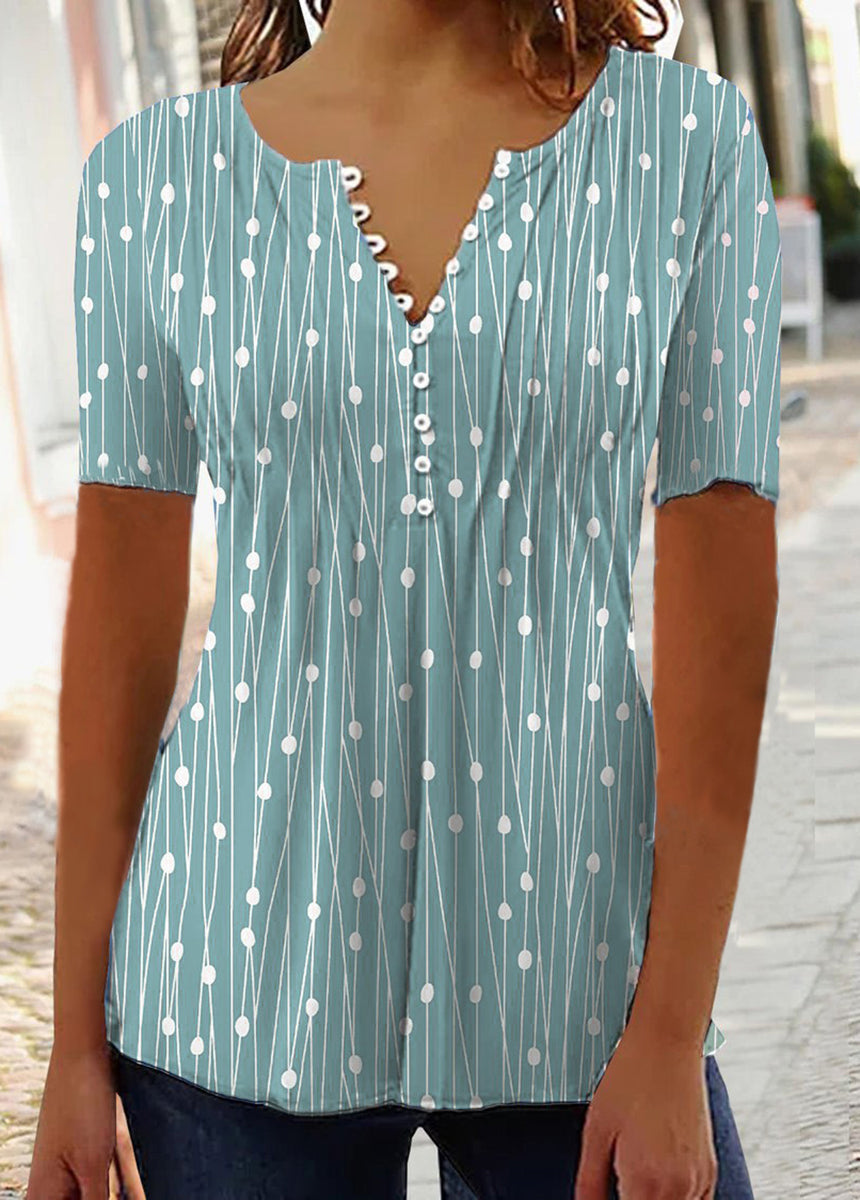Sale V-Neck Polka Dot Short Sleeve Shirt