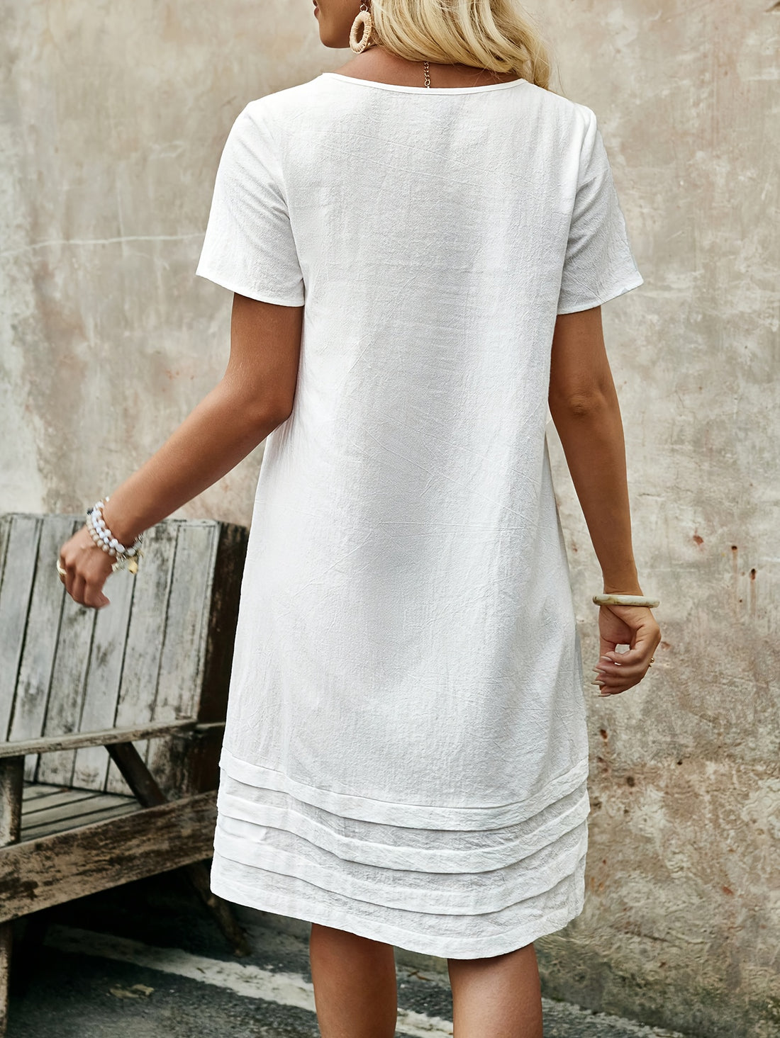 Elegant Solid Color Waist Seven Quarter Sleeve Round Neck Dress