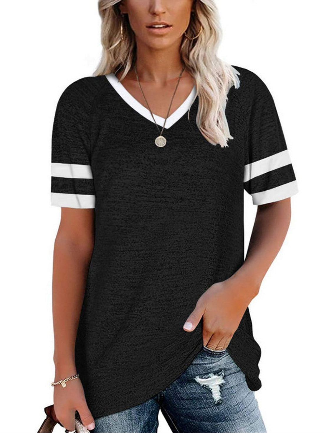 Women's T-shirt Casual V Neck Short Sleeve Loose Fashion Summer T-shirt