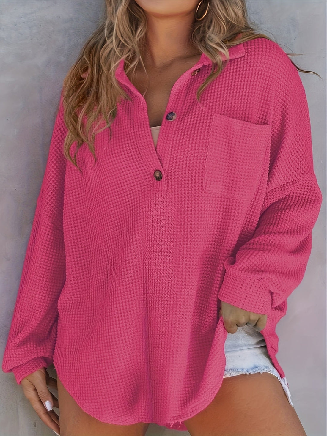 Sale Solid Color Chic Button T-Shirt - Long Sleeve, Collared, Comfortable, Versatile Top