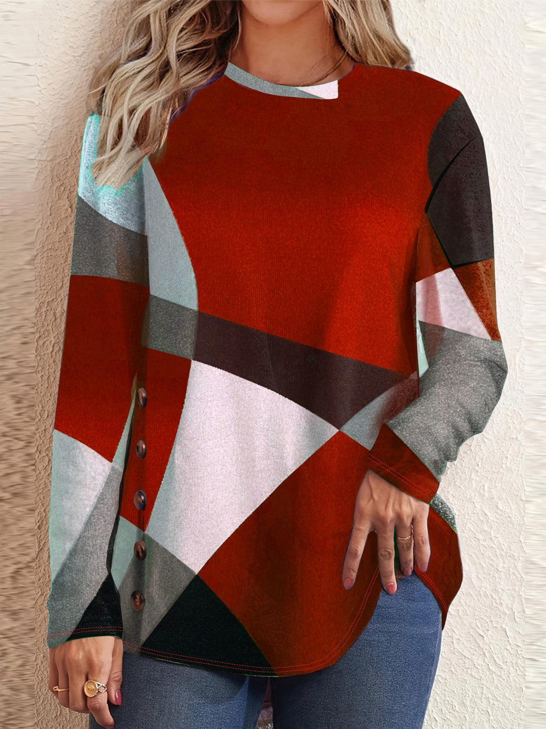 Sale Colorblock Long Sleeve T-shirt, Women's Casual Round Neck Slight Stretch Tee