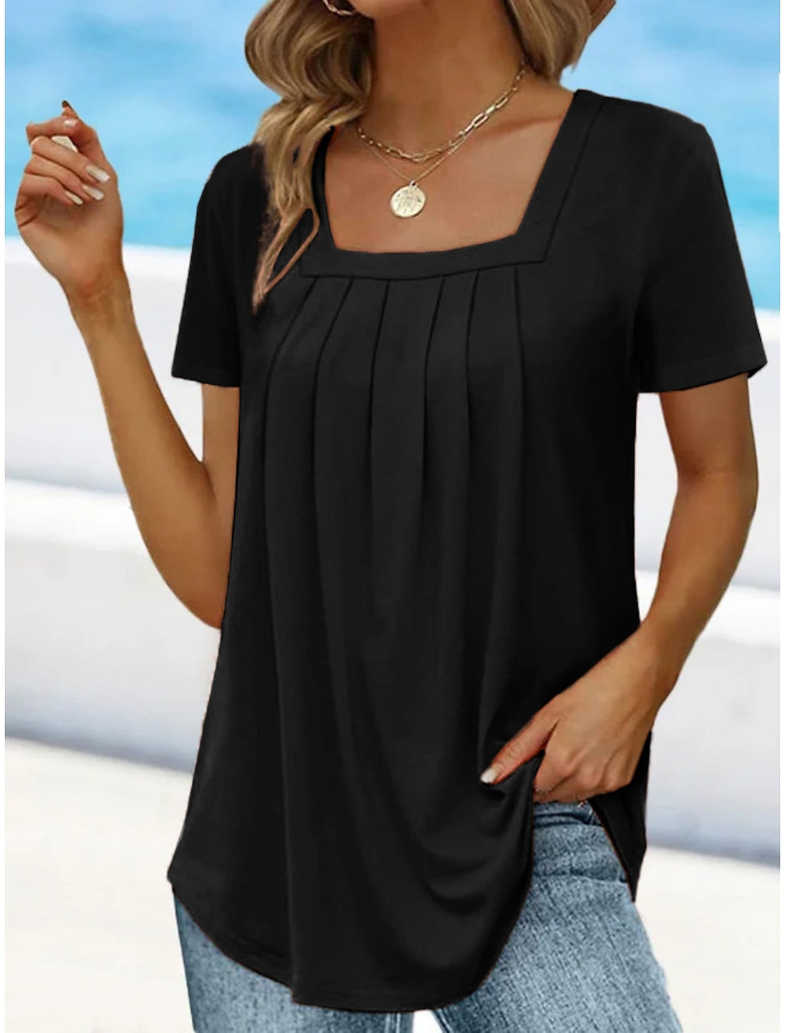 Sale Elegant Black Square Neck Short Sleeve Solid Regular Fit Basic T-Shirt