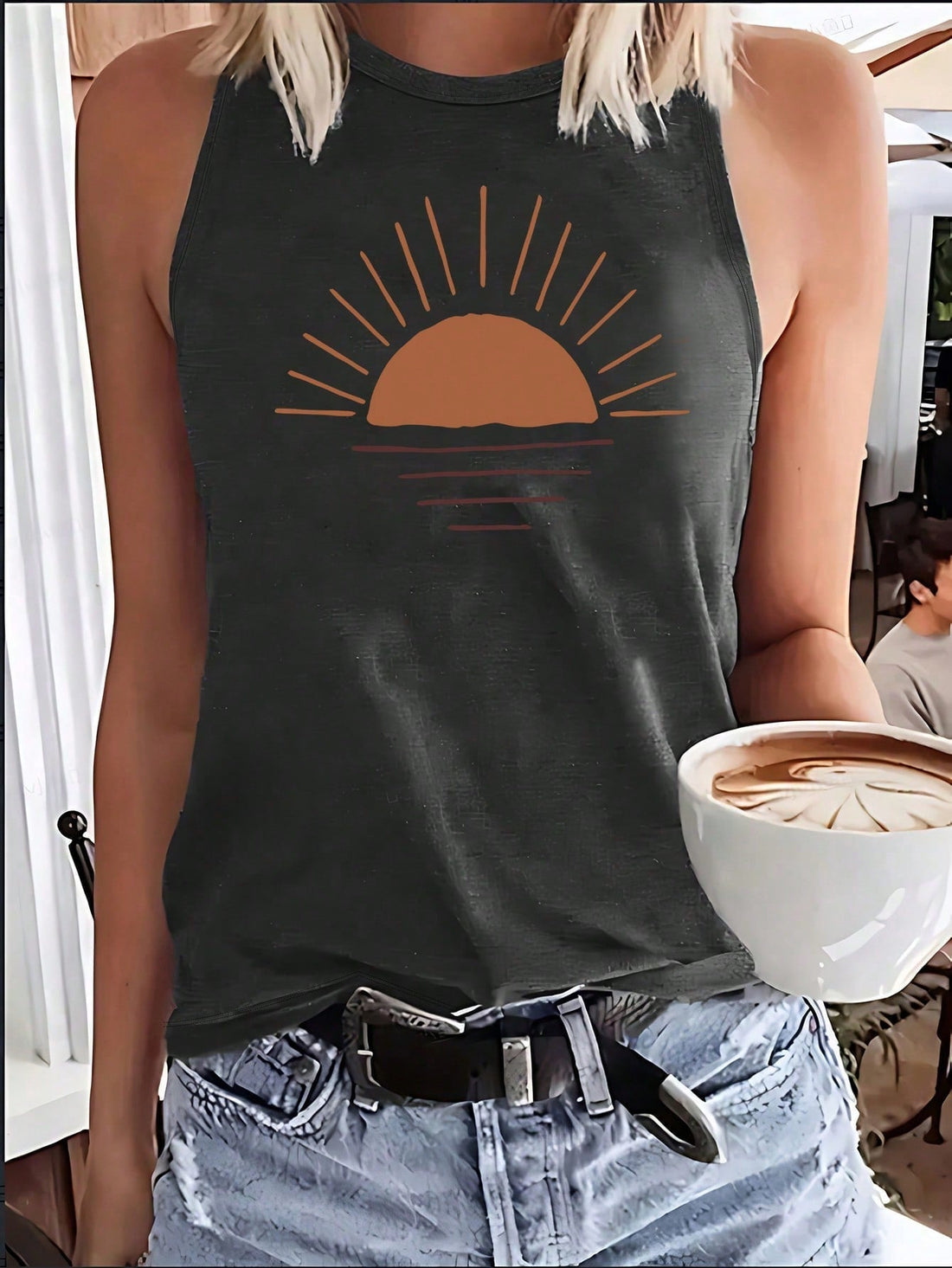 Sunrise Easy Line Drawing Printed Casual Round Neck Tank Top