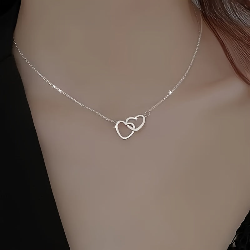 Simple Elegant Hollow Heart Pendant Necklace, Alloy Double Loop Design, Fashionable Daily Wear Jewelry, Ideal Valentine'S Day Gift for Her