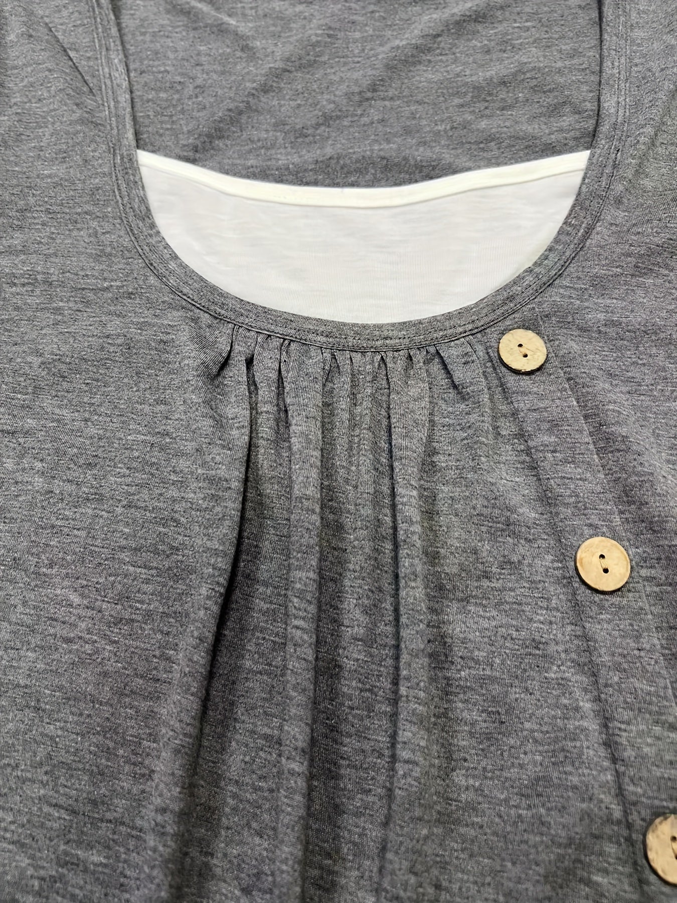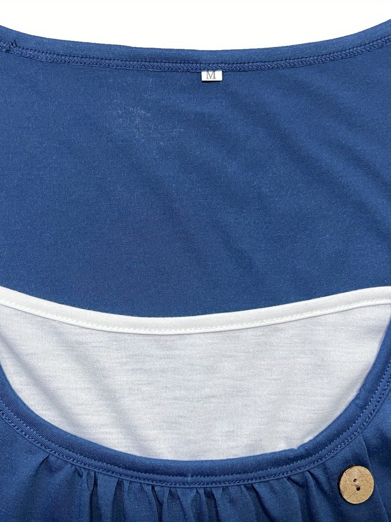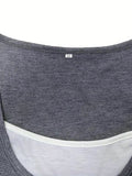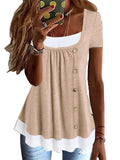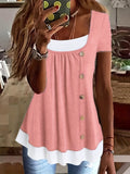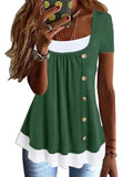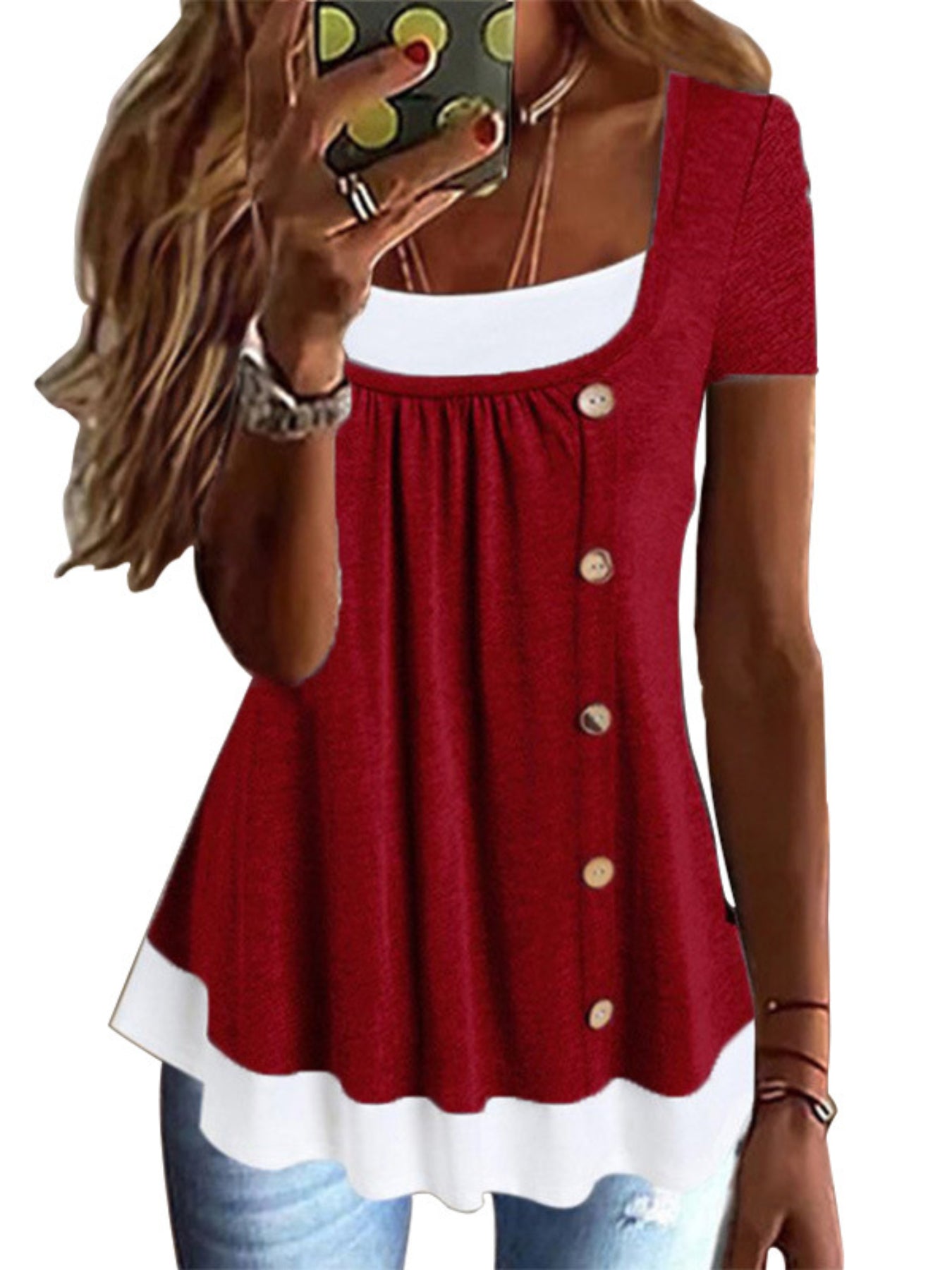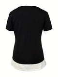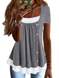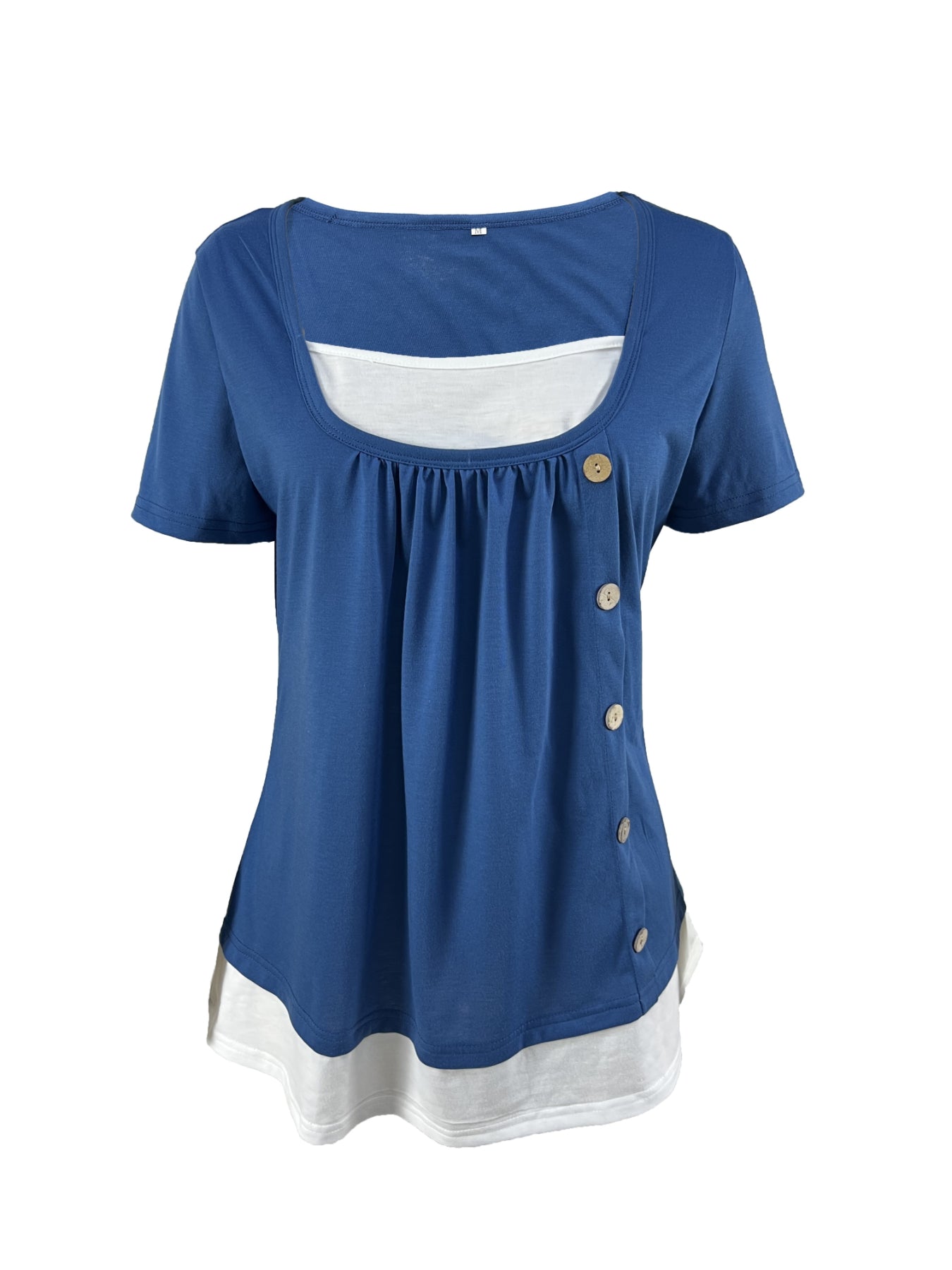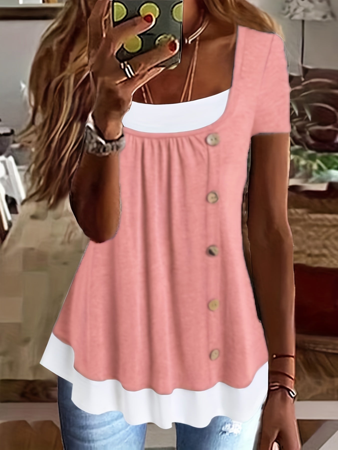 2 In 1 Color Block Button Front T-shirt, Casual Short Sleeve T-Shirt