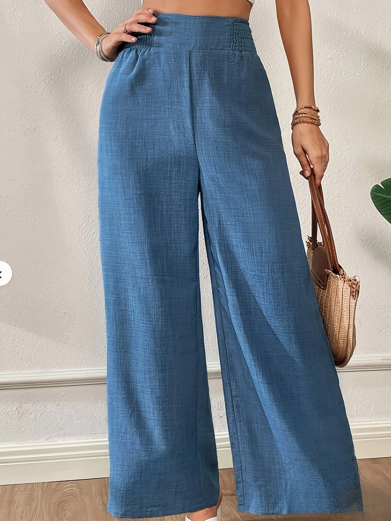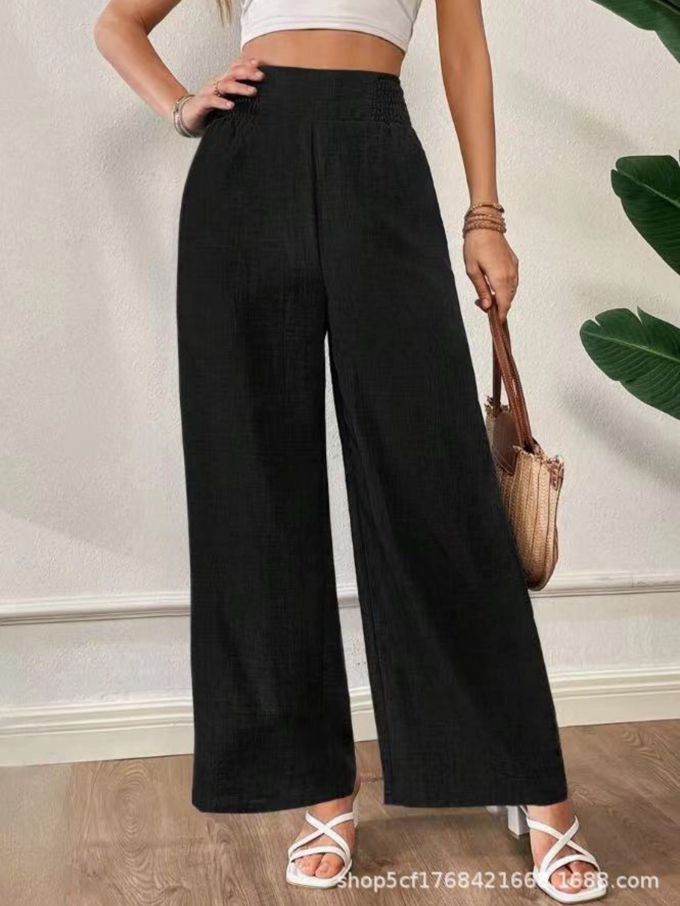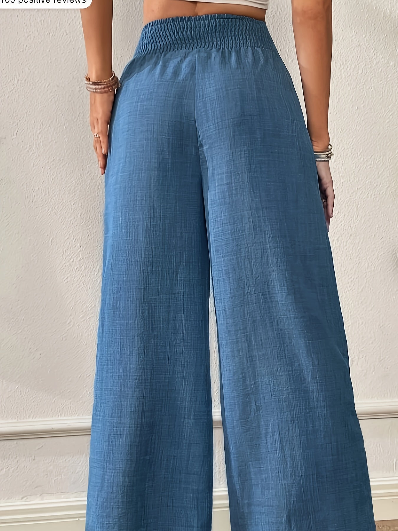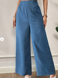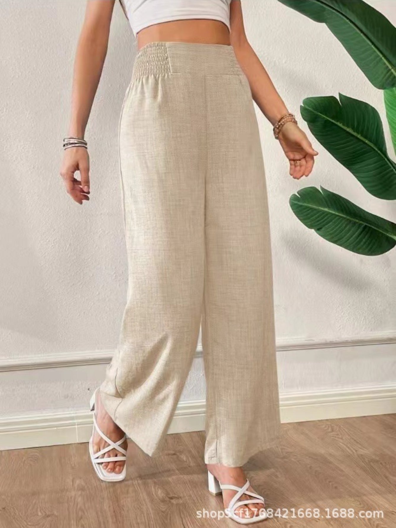 Sale Apricot Loop Drawstring Elastic Waistband Casual Wide Leg Pants