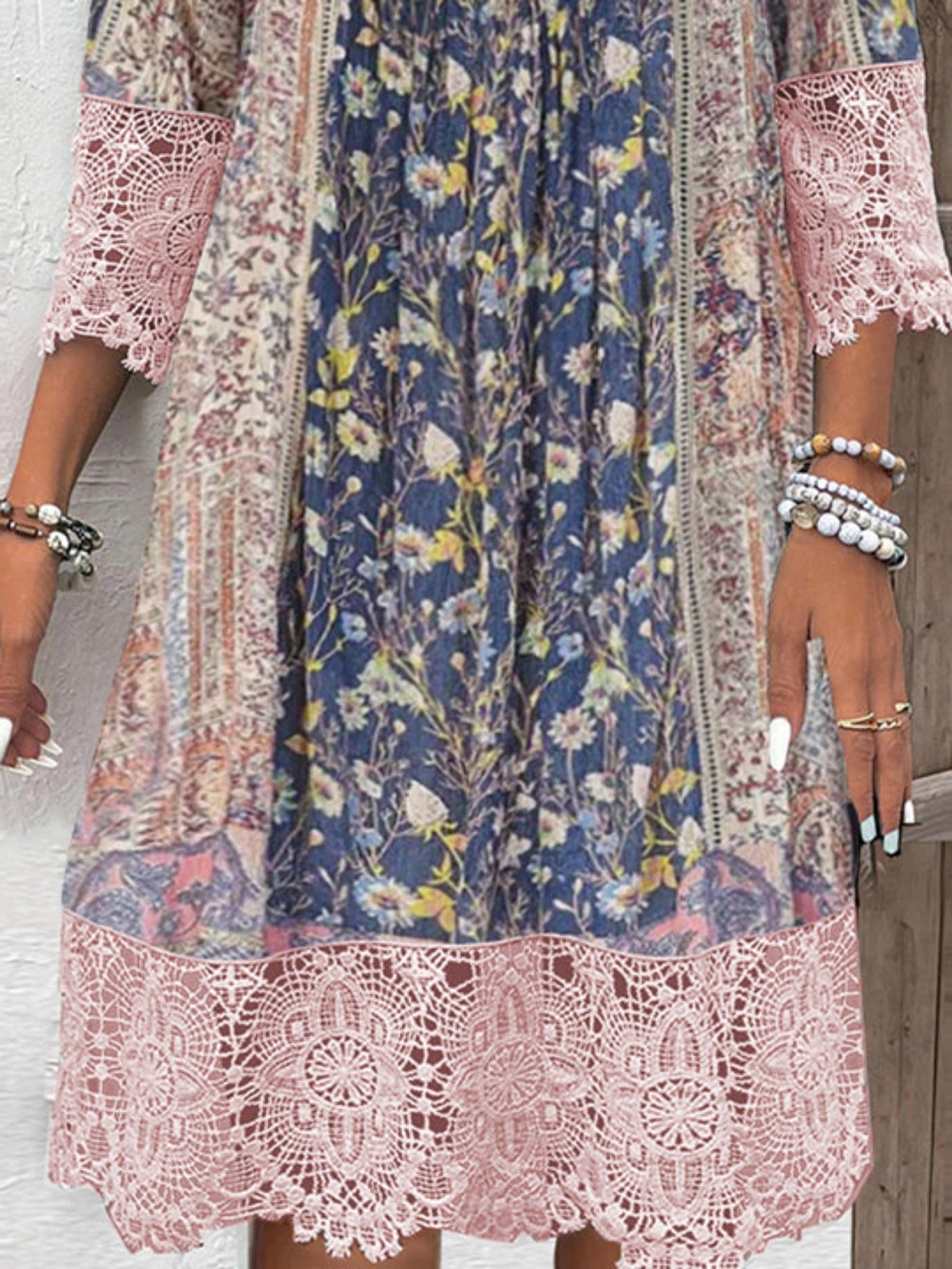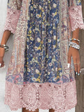 3/4 Sleeve V-neck Graphic Lace Midi Dress