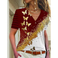 3D Flower Print V-Neck Short Sleeve T-Shirt