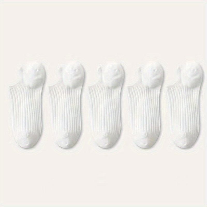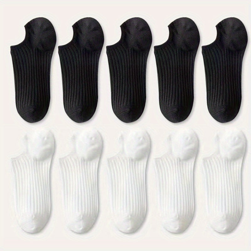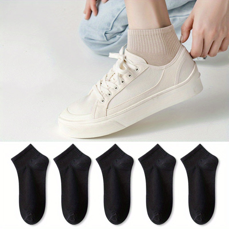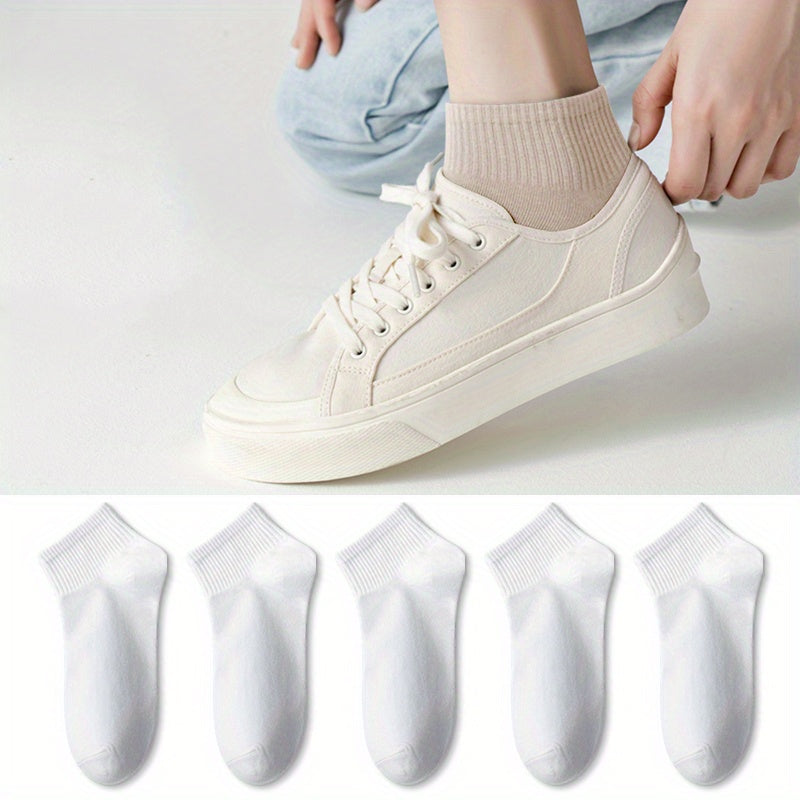 Sale 5 Pairs Simple Crew Socks, Comfy & Breathable Low Cut Ankle Socks