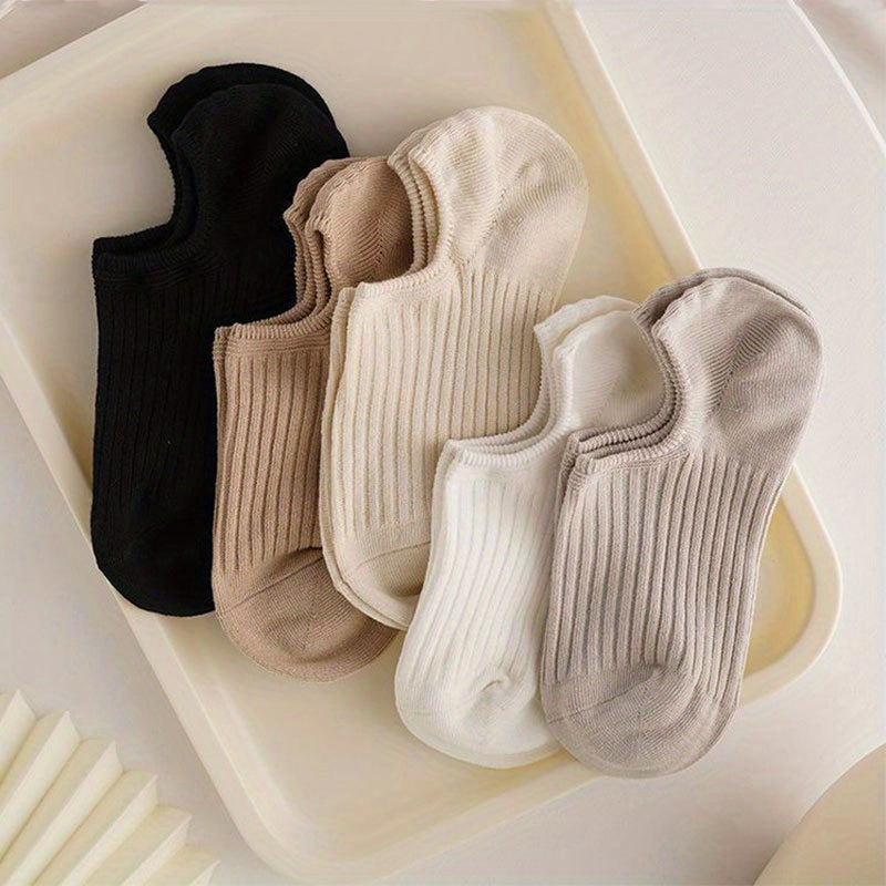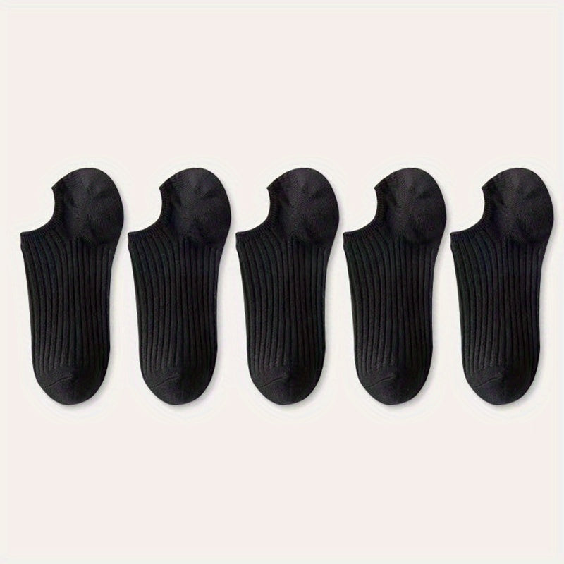 Sale 5 Pairs Solid Ribbed Socks, Casual & Comfy All-match Ankle Socks