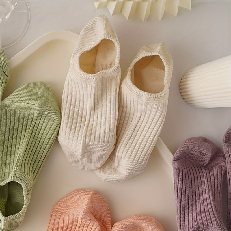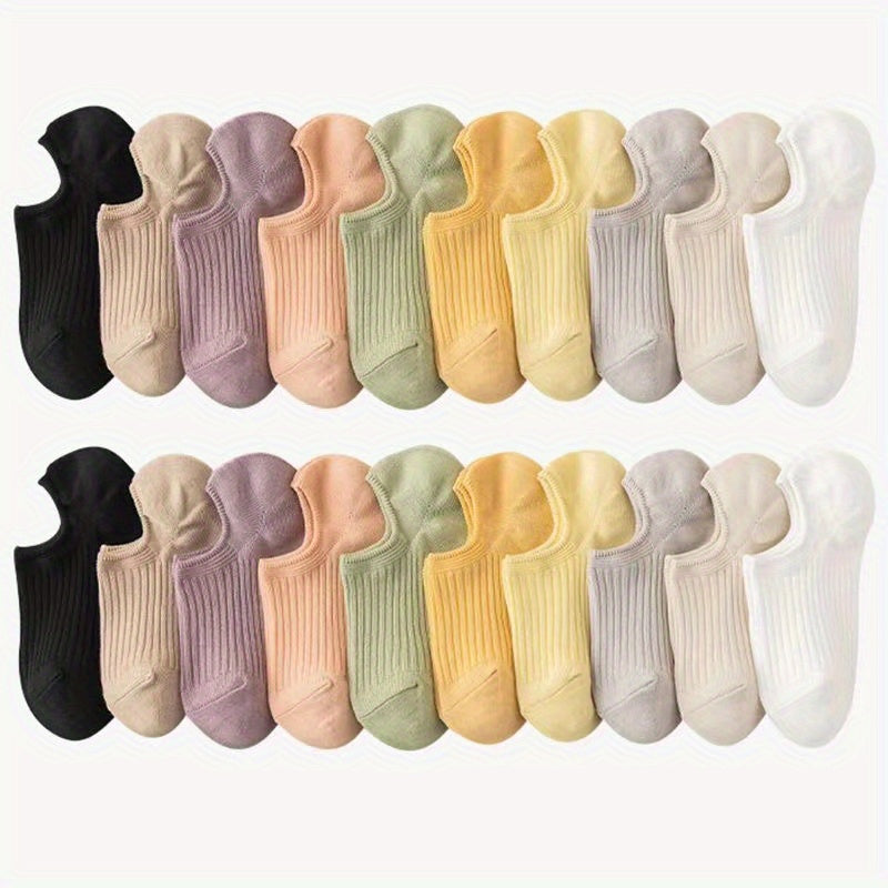 5/10 Pairs Colorful Ribbed Short Socks, Comfy & Breathable Elastic Ankle Socks