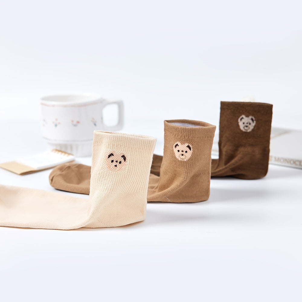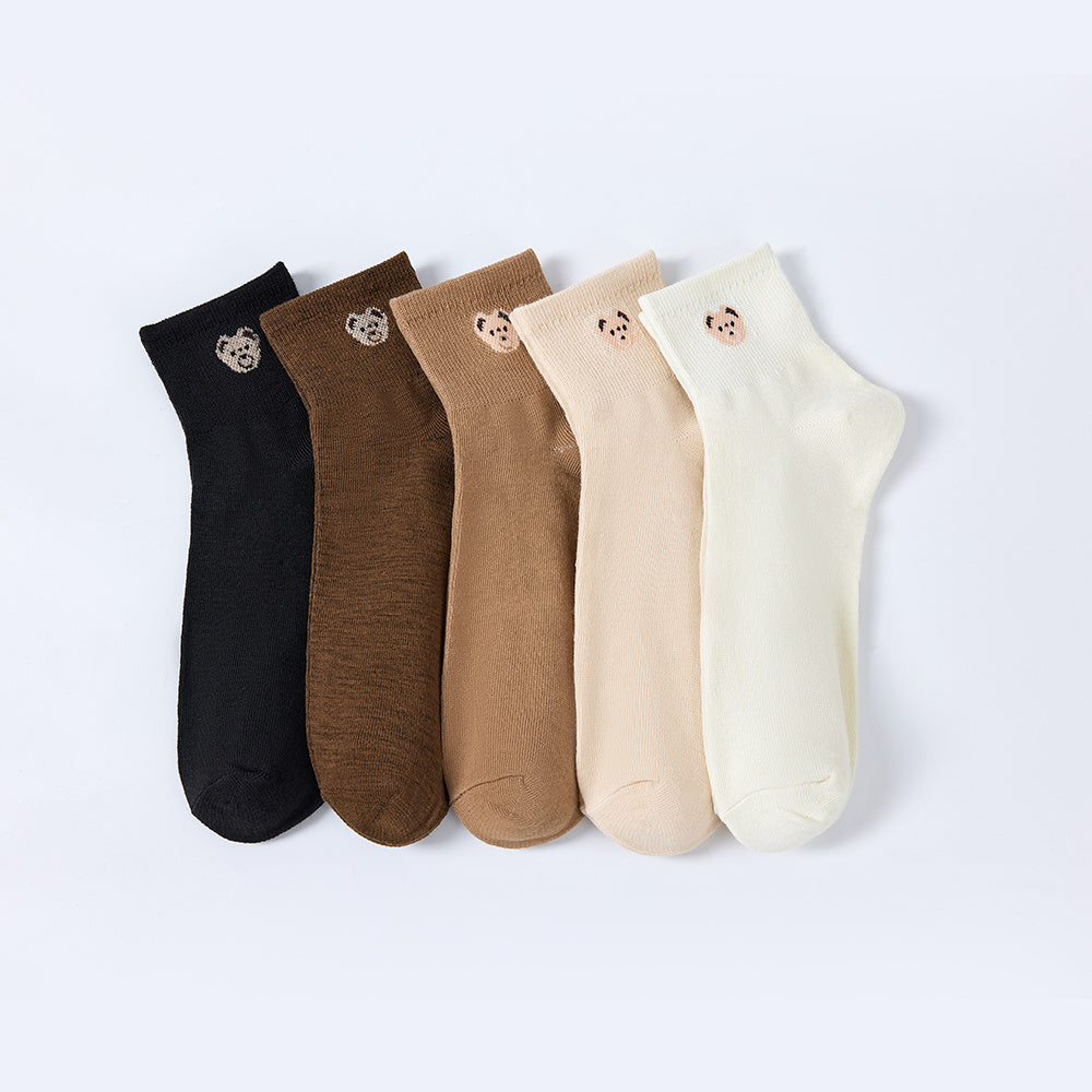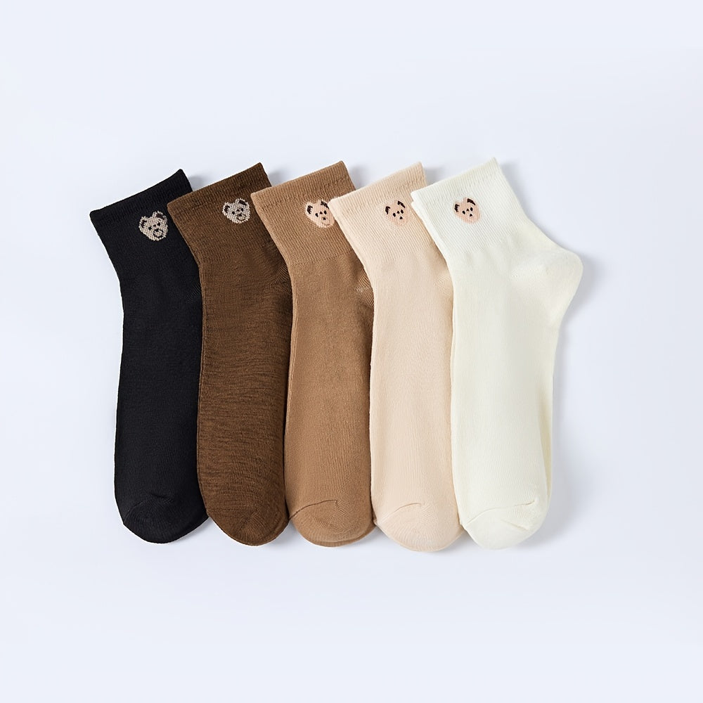 5 Pairs Soft Teddy Bear Socks, Crew Length Sock Pack