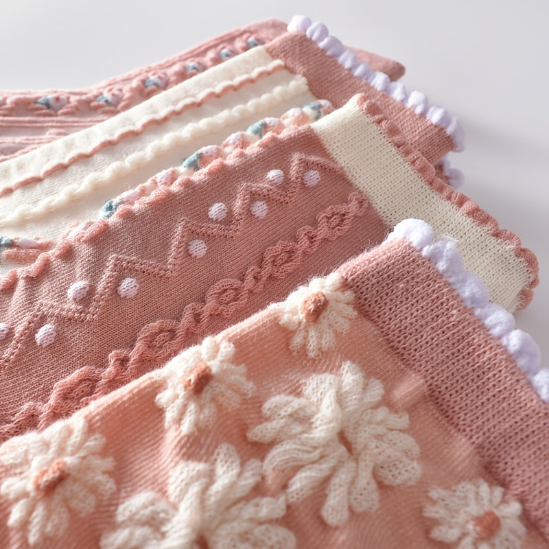 Sale 5 Pairs Women's Ethnic Embroidered Mid Socks