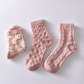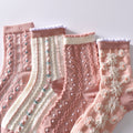 6 Pairs Flower Bubble Cable Crew Socks, Lightweight & Comfy Mid-tube Socks