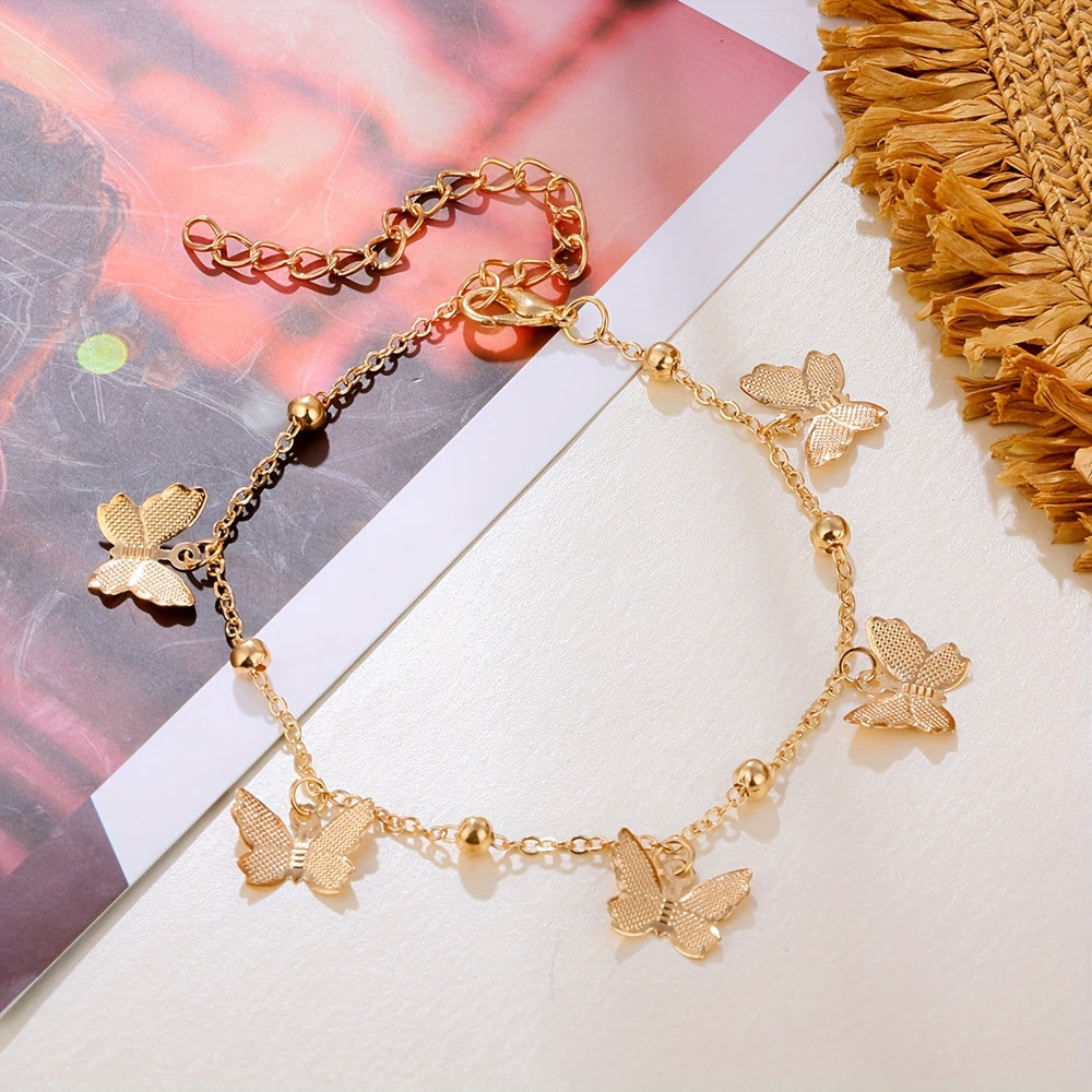 A Stylish Bracelet For Women With An Elegant And Graceful Golden And Silvery Butterfly Pendant, Suitable For Daily Wear By Women And As A Gift For Friends.