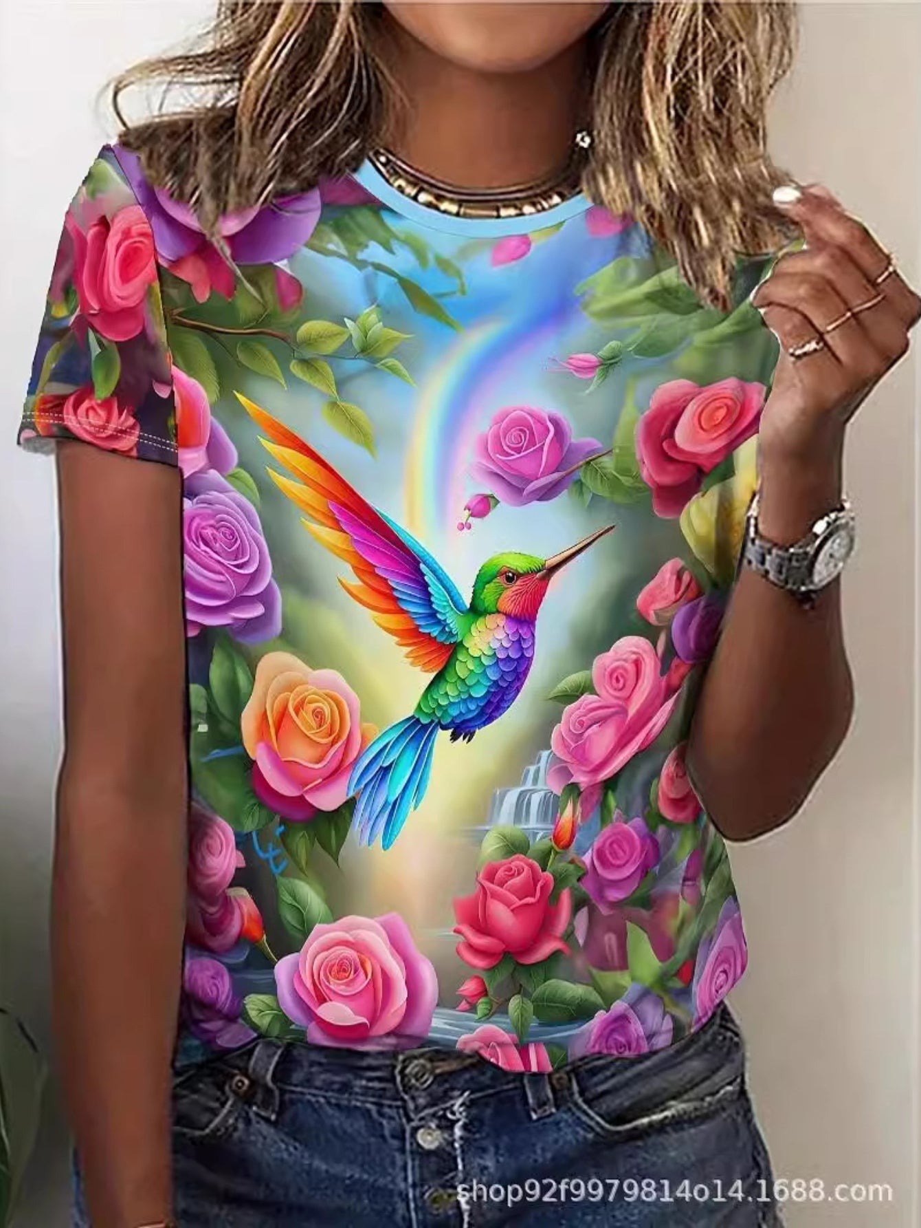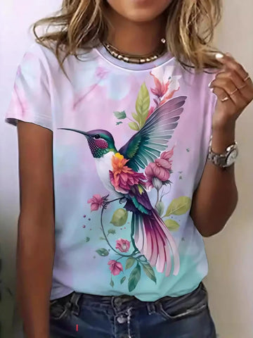 Women's Sweetheart 3D Print Fashion Tee - Soft Polyester & Spandex Blend