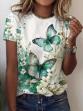 Crew Neck Floral Long Sleeve Comfy Casual Sweater Tee