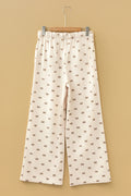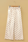 Apricot Bow Print Drawstring Elastic Waist Loose Corduroy Pants