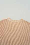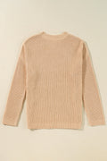 Apricot Cable Knit Drop Shoulder Side Slits Loose Sweater