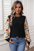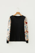 Sale Black Floral Mesh Sheer Long Sleeve Top