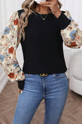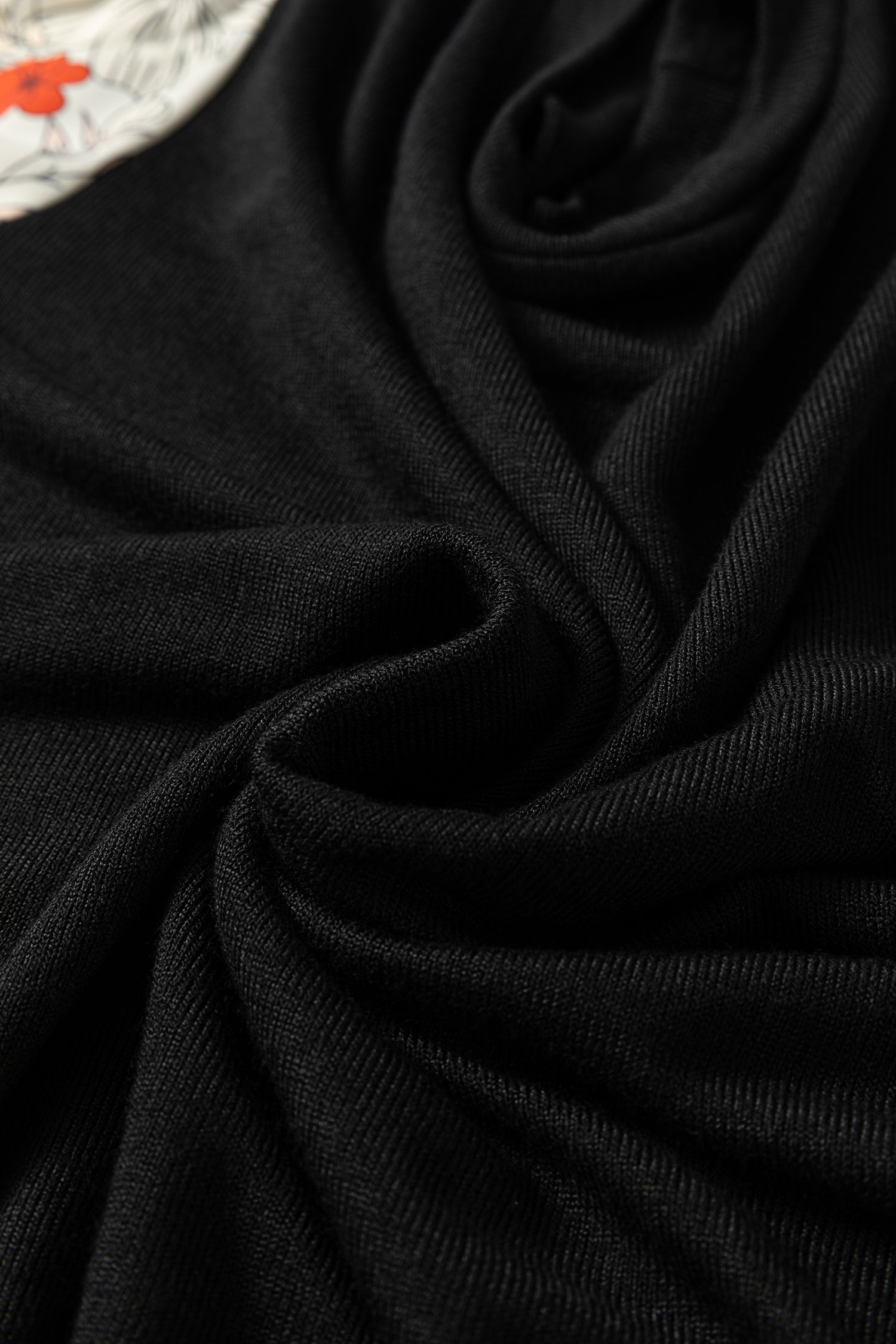 Sale Black Floral Print Mesh Fitted Long Sleeve Top