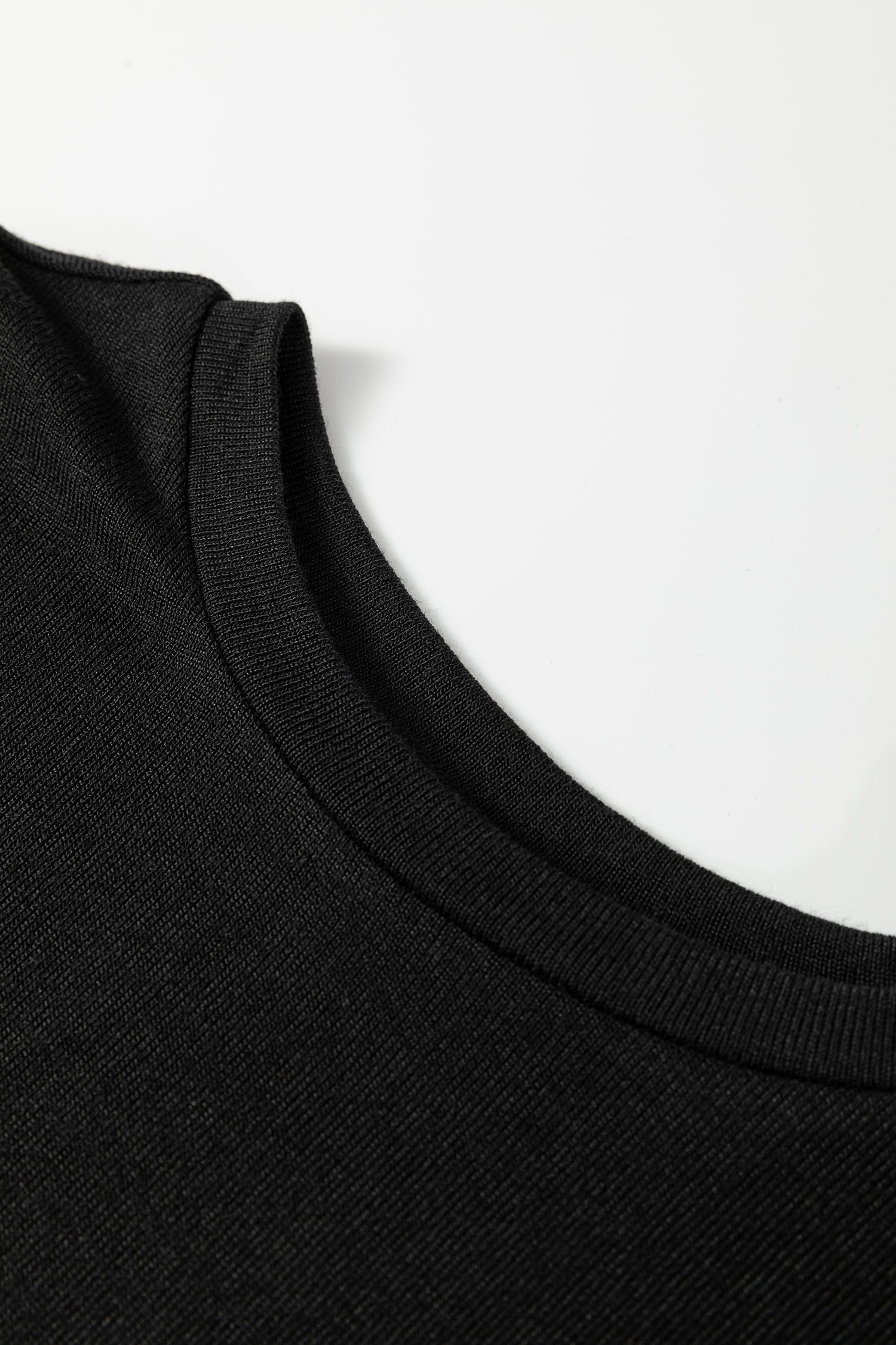 Sale Black Solid Color Seam Detail Raglan Long Sleeve Top