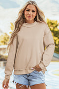 Apricot Oversize Drop Shoulder Reversible Mock Neck Sweatshirt