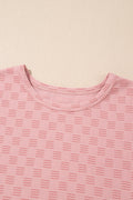 Sale Apricot Pink Checkered Textured Round Neck T-shirt