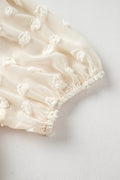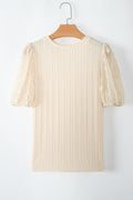 Sale Apricot Polka Dot Mesh Puff Sleeve Textured Blouse