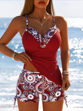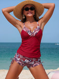 Sale Women's Vacay Tankini Set, Plus Size Floral Pattern Drawstring Front Top & Boxer Short Bottom Swimsuit 2 Piece Set