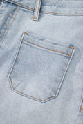 Sale Bluing Asymmetric Wrapped Buttoned High Waist Denim Shorts