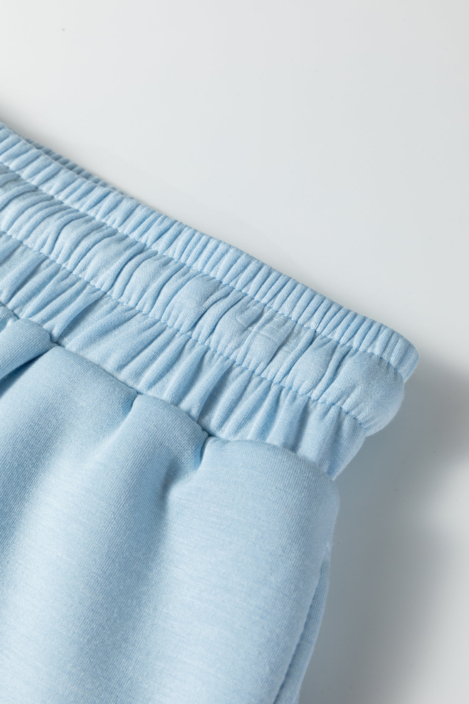 Beau Blue Solid Color Half Zip Loose Short Sleeve Sweatshirt 2pcs Set