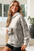 Beige Camouflage Woodland Print Oversized Sporty Hoodie