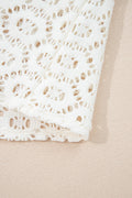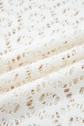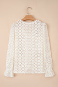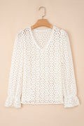 Beige Flower Lace V Neck Ruffled Sleeve Top