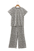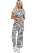 Beige Leopard Print Casual Tee and Pants 2pcs Outfit