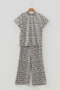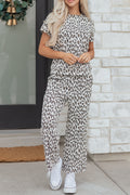 - Trendy leopard print 2pcs outfit featuring a tee and matching pants.Soft, stretchy fabric ensures all-day comfort and easy movement.Perfect casual loungewear set for relaxing or running errands.Mix and match each piece for versatile everyday styling.