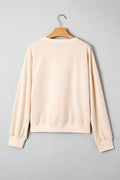 Beige Raw Edge Flower Patch Drop Shoulder Casual Top