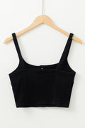 Black Acid Wash Buttoned Cropped Slim Denim Tank Top