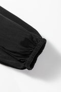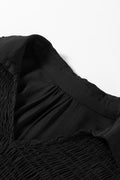 Black Collared V Neck Smocked Detail Contrast Leopard Trim Bracelet Sleeve Long Dress