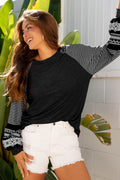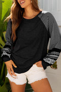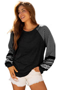 Black Contrast Print Striped Raglan Long Sleeve Loose Top