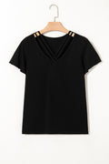 Sale Black Crisscross V Neck Butterfly Sleeve T Shirt