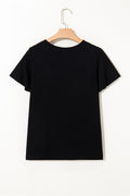Sale Black Stripe Half Sleeve Scoop Neck Loose Top