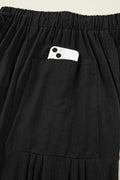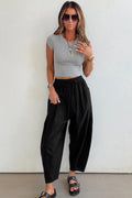 Black Pleated Detail Pull On High Elastic Waist Loose Straight Pants