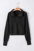Sale Black Fleece Lined Zip Up Stand Collar Thumbhole Sleeve Sweatshirt