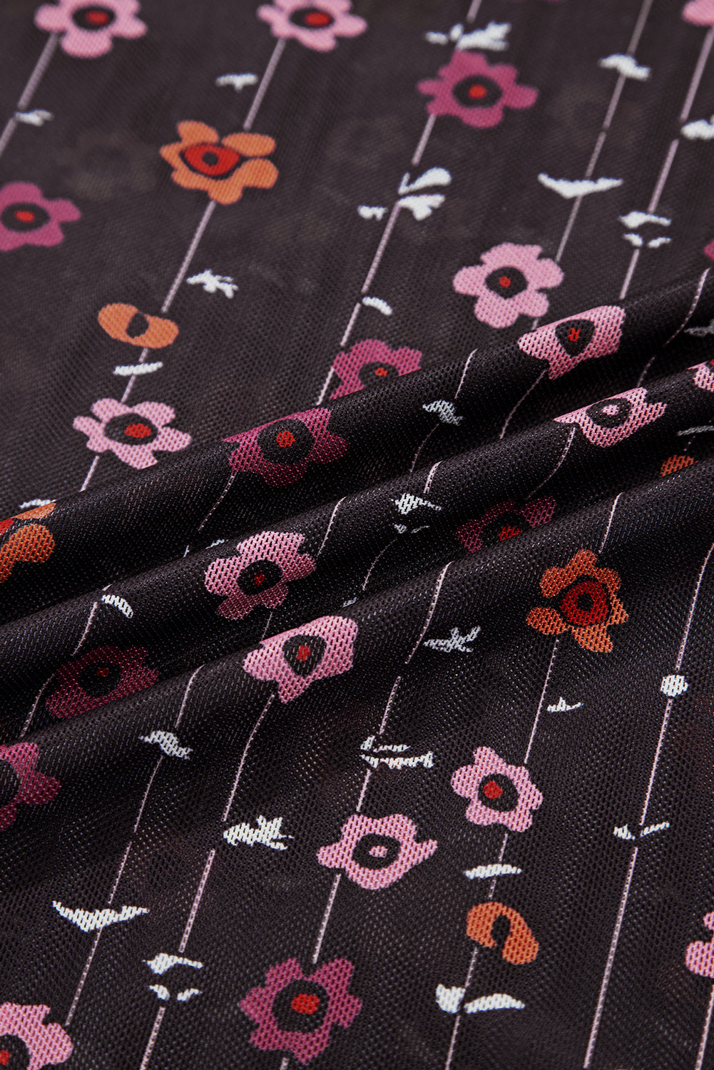- Floral mesh design adds a romantic and flirty sheer effect.Slim fit highlights curves with a sleek, body-hugging silhouette.Smocked cuffs offer subtle volume and a touch of elegance.A chic mesh bodysuit perfect for club night out.